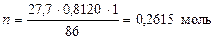 где: 0,8120 – плотность изоамилового спирта, г×(см3)-1; 1 – массовая доля изоамилового спирта в растворе; 86 – молярная масса изоамилового спирта, г×моль-1. Уксусная кислота: