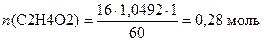 где: 1,0492 – плотность уксусной кислоты, г×(см3)-1; 1 – массовая доля уксусной кислоты в растворе; 60 – молярная масса уксусной кислоты, г×моль-1. б) Составим мольное соотношение реагентов: C2H4O2:С5Н12О = 0,2501: 0,2615 Делим все три числа на 0,2501 (число моль вещества, по которому ведем расчет); получаем новое мольное соотношение: 1: 1,0456 в) Сохраняя это мольное соотношение, находим количество молей, массы и объемы реагирующих веществ, исходя из выданных по заданию 16 см 3ледяной уксусной кислоты В них содержится: