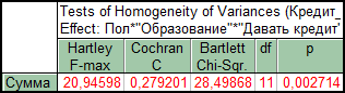 Дисперсии не равны, значит на переменную "Сумма" влияют выбранные параметры. Замечание. Этот вывод неверен! Предположение о том, что наличие высшего образования у мужчин влияет на кредитование, подтверждается. Также чаще выдавались женщинам со специальным образованием, нежели мужчинам со специальным образованием. Кредиты не выдавались женщинам со средним образованием гораздо чаще, чем аналогично образованным мужчинам. Также можно заметить общую тенденцию: в кредитах чаще отказывалось женщинам с любым уровнем образования, что ещё раз доказывает следующие графики: