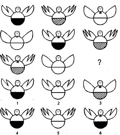 _______________ Часть I. Психо логическая диагностика ____________ 2. Вставьте слово, которое служило бы окончанием первого ВАМ (...) АМИДА 3. Исключите лишнее слово: НОЗИБ ФЕЛЕТОН АБРЕЗ ГРИТ 4. Вставьте пропущенное слово: СОРГО (ГОРА) САФРА ВОБЛА (....) ПЬЕСА 5. Выберите нужную фигуру из шести пронумерованных: