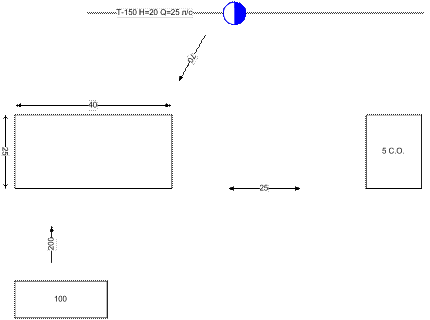 Горение на открытом складе хранения ТГМ. Площадь пожара на момент прибытия дежурного караула примерно 200 м2. Линейная скорость распространения горения 1,0 м/мин. Требуемая интенсивность подачи воды 0,2 л/(с*м2). На месте пожара: АЦ-2,5-40(131Н) и АНР – 40(130)127А. Время введения стволов – 5 мин. Необходимо: 1. Организовать тушение пожара, имеющимися силами и средствами. 2. Привести схему расстановки сил и средств. Решение: 1. Определяем площадь тушения пожара. На момент введения стволов на тушение пожар не достигнет противоположной стороны. Так как склад ТГМ открытый, следовательно hт > Sп, Sп = Sт = 200 м2 2. Определяем требуемый расход воды на тушение: Qтр = Sт х Jтр = 200 х 0,2 = 40 л/с. 3. Определяем требуемое количество стволов на защиту. Исходя из тактических соображений и возможной обстановки на пожаре принимаем для защиты соседнего строения 1 ствол «Б». 4. Определяем требуемое количество стволов на тушение. Исходя из тактических соображений принимаем для тушения пожара стволы «А» со свернутыми насадками с расходом 10 л/с. Nствт = Qтрт / q ствА = 40 / 10 = 4 ствола «А». 5. Определяем общий расход на тушение и защиту: Qобщ = Qтрт + Qтрз = 40 + 3,5 = 43,5 л/с. 6. Определяем соответствие пожарного гидранта на водоотдачу. Условие Qсети > Qобщ, 25 л/с < 43,5 л/с. Так как пожарный гидрант не обеспечивает общий расход воды, используем пожарный водоем объемом 100 м3 7. Определяем остаток фактического расхода воды, который не обеспечивается водопроводом: Qост = Qф – Qводопр = 43 – 25 = 18 л/с 8. Определяем общий расход огнетушащего вещества: Qобщв = Qфт х 60 х tр х кз = 20 х 60 х 20 х 3 = 72000 л/м3 Qост < Vпв, следовательно объект водой обеспечен. 9. Определяем количество личного состава для ликвидации последствий пожара: Nл/с = NствА х 2 + NствБ + Nразв = 8 + 1 + 4 = 13 чел. Так как согласно норм положенности в б/р АЦ - 2,5 – 40 (131Н) находиться 7 человек, на АНР – 40 (130) 127А – 10 человек, следовательно Nл/стр < Nл/сф 3. Привести схему расстановки сил и средств.