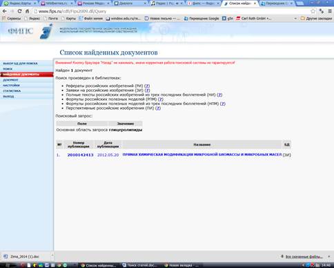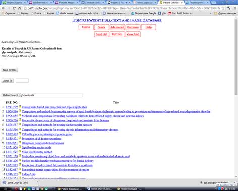 1. Патентная база данных www.fips.ru А) При введении глицеролипиды был получен 1 результат.