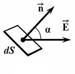 где α – угол между вектором напряженности и нормалью n к элементу поверхности; S о – проекция площадки S на плоскость перпендикулярную силовым линиям; E n – проекция вектора напряженности на нормаль (рис. 13).