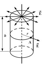 · Напряженность поля, создаваемого бесконечно длинной равномерно заряженной нитью (или цилиндром, рис. 15) на расстоянии r от ее оси