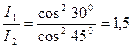 Пример 2. Угол между главными плоскостями поляризатора и анализатора составляет 300. Определите изменение интенсивности прошедшего через них света, если угол между главными плоскостями равен 450. Решение: Согласно закону Малюса интенсивность плоскополяризованного света