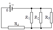 где: R – полное сопротивление цепи. Резисторы R 1, R 2, R 3 соединены параллельно и все вместе последовательно с R 4. При параллельном соединении падение потенциала на каждом резисторе одинаковое, т.е. U 1 = U 2 = U 3; а сопротивление: