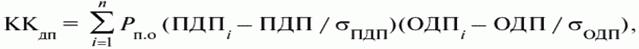 где Р п.о – прогнозируемые вероятности отклонения денежных потоков от их среднего значения в плановом периоде; ПДП i – варианты сумм положительного денежного потока в отдельных интервалах планового периода; ПДП – средняя сумма положительного денежного потока в одном интервале планового периода; ОДП i – варианты сумм отрицательного денежного потока в отдельных интервалах планового периода; ОДП – средняя сумма отрицательного денежного потока в одном интервале планового периода;?ПДП,?ОДП – среднеквадратическое (стандартное) отклонение сумм положительного и отрицательного денежных потоков соответственно.