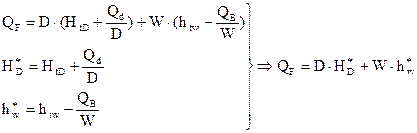 При заданном составе остатка При ↑ т.F определяется составом сырья и его энтальпией, но всегда лежит на PP’.