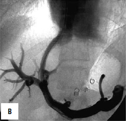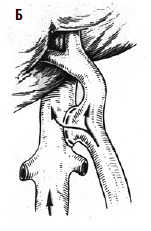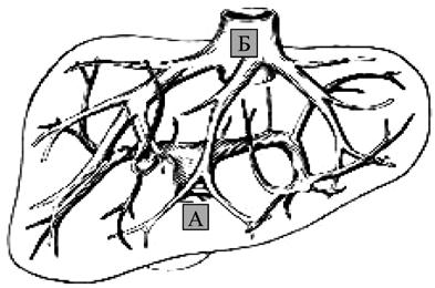 Рис. 90. Операция чрезъяремного внутрипеченочного портосистемного шунтирования (TIPS): А – схема операции; Б – этап постановки стента; В – контроль проходимости стента Трудности заключаются в более раннем определении показаний для трансплантации печени, пока в организме не развились необратимые расстройства других органов и систем. Другая важная задача – получение донорской печени. Эта задача может быть решена только при разработке программы органного донорства.