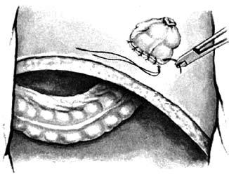Рис. 213. Магнитно‑резонансная томография (сагиттальная проекция). Рак нижнеампулярного отдела прямой кишки. Непрямая магнитно‑резонансная лимфография. На снимке виден увеличенный, метастатически пораженный лимфоузел в мезоректуме (черная стрелка). Неравномерное распределение парамагнетика в лимфоузле. Лечение рака прямой кишки Основным методом лечения рака прямой кишки является хирургический. В ряде случаев применяют комбинированное лечение – хирургическое и лучевое. Химиотерапии при раке прямой кишки отводится вспомогательная роль, поскольку эти опухоли относительно резистентны к воздействию цитостатиков (эффективность химиотерапии остается в пределах 20–30 %). Радикальное лечение В 1826 г. J. Lisfranc впервые удалил опухоль нижних отделов прямой кишки из промежностного доступа. В 1882 г. М. Konig, начав операцию из промежностного доступа, вынужденно выполнил лапаротомию, удалил прямую кишку с опухолью из комбинированного доступа и закончил операцию формированием сигмостомы. В дальнейшем, в 1896 г. R. Quenu и в 1908 г. W.E. Miles, развили и усовершенствовали методики брюшно‑промежностной экстирпации прямой кишки (их имена носит эта операция). Н. Hartman в 1920 г. выполнил резекцию сигмовидной кишки с опухолью, с последующим формированием одноствольной колостомы на передней брюшной стенке и ушиванием наглухо дистального участка с погружением его под тазовую брюшину (операция Гартмана). В 1939 г. W. W. Babcock предложил низведение мобилизованной толстой кишки через сфинктер заднего прохода (первый вариант брюшно‑анальной резекции). Из радикальных операций в настоящее время чаще всего применяют: • переднюю резекцию прямой кишки; • брюшно‑анальную резекцию с низведением сигмовидной кишки; • операцию Гартмана; • брюшно‑промежностную экстирпацию прямой кишки. Подготовка кишки к операции Очень большое значение имеет подготовка толстой кишки к операции. С первого дня поступления из питания исключаются продукты, содержащие клетчатку (овощи, фрукты, как в сыром, так и в вареном виде). Назначается внутрь 25 % раствор сернокислой магнезии по 30 мл три раза в день. За три дня до операции рекомендуется употребление жидкой пищи (бульон, молоко, сливки, сметана, кефир, простокваша, соки без мякоти). Накануне операции утром натощак пациент выпивает 100 мл 25 % раствора сернокислой магнезии, то есть всю дневную дозу препарата. В дальнейшем прием любой пищи, а также сернокислой магнезии, запрещен. В течение этого дня можно пить только воду. Накануне операции вечером делают очистительные клизмы с промежутками в 20–30 минут до полного эффекта очистки. Наиболее универсальным методом подготовки кишки следует считать использование растворов на основе комплексных препаратов полиэтиленгликоля (ПЭГ) молекулярной массой 3000–5000 и электролитов (лаваж). Концентрация ПЭГ в 5–6 % водном растворе сохраняет качество полимера, который способен удерживать от всасывания объем воды в кишечнике, желудке, а водно‑электролитный баланс и компенсация потерь ионов с кишечным секретом полностью корригируется введением электролитов с осмотическим давлением изотонического раствора (NaCI, KCI, NaHC03, KHC03, Na2S04, Mg S04). Наличие в растворе электролитов, соответствующих осмотическому давлению физиологического раствора, восполняет кишечную секрецию калия, натрия, хлора бикарбоната, в связи с чем не прои