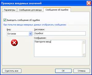 Рис.5 Настройка ввода данных из списка значений Сделайте текущей любую ячейку в столбце С. Убедитесь, что ввести в неё произвольное значение, отсутствующее в списке, теперь невозможно. Щёлкните на раскрывающей кнопке, чтобы выбрать допустимое значение из списка (см. рис.6).