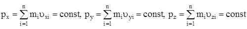 Закон сохранения импульса: полный импульс замкнутой системы остается постоянным. Для замкнутой системы будут сохраняться и проекции импульса на координатные оси: