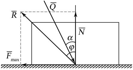 Для рівноваги тіла на шорсткій поверхні необхідно та достатньо, щоб лінія дії рівнодіючої активних сил Тіло не можна вивести зі стану рівноваги будь-якою за модулем активною силою, якщо лінія її дії проходить усередині конуса тертя.