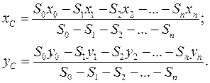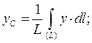 де Точку С, координати якої визначаються такими формулами, називають центром ваги площі. Для координат центру ваги лінії формули такі: