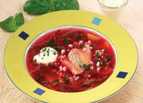Правила подачі Відпустити у підігрітій великій тарілці, покласти кусочок м'яса, налити борщ, покласти сметану. Вимоги до якості Зовнішній вигляд: овочі не розварені, зберегли форму. Смак і запах: в міру солоний, кисло-солодкий,з яскраво вираженим ароматом продуктів які входять до приготування борщу.