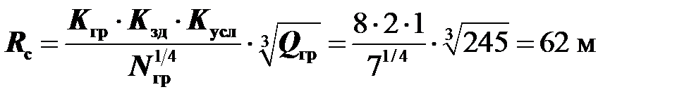 5.2.1. Безопасное расстояние R с при неодновременным взрыванием N гр групп зарядов со временем замедления между взрывами каждой группы зарядов 20 мс: