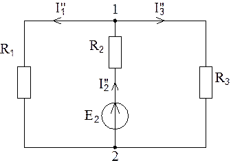Обозначим токи, протекающие под действием ЭДС Е2, через I’’1, I’’2, I’’3 и найдем их: