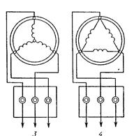 Статор и ротор состоят из сердечника (магнитопровода) и обмоток. Сердечники статора и ротора набирается из стальных пластин толщиной 0,5 мм, изолированных лаком или тонкой бумагой для уменьшения потерь на вихревые токи. Пластины штампуются с впадинами (пазами), собираются в отдельные пакеты и крепятся в станине двигателя (статор), или на валу машины (ротор). Между поверхностями статора и ротора имеется небольшой воздушный зазор размером 0,8 - 1,5 мм. В пазы статора укладывается трёхфазная обмотка проводники которой соединяются ”звездой” или ”треугольником”. Обычно на щитке машины имеется шесть зажимов, к которым присоединяются начала и концы обмоток. Приняты следующие обозначения выводов фаз обмотки статора: начала фаз маркируются С1, С2, С3; их концы соответственно С4, С5, С6.