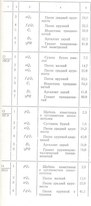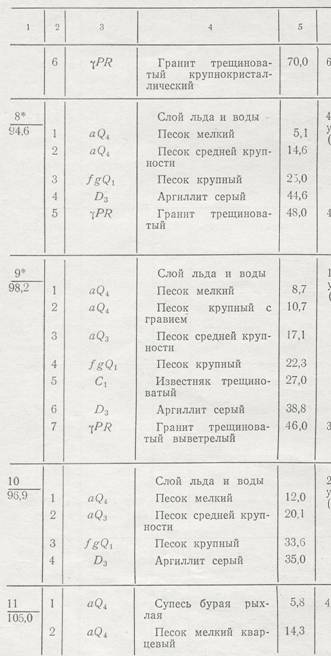 Таблица 14 Описание буровых скважин к геологической карте на рис111
