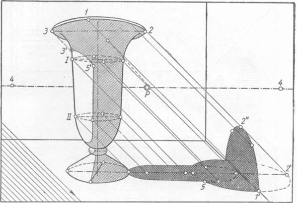 Рис. 117. Тени вазы при направлении световых лучей параллельно к картине