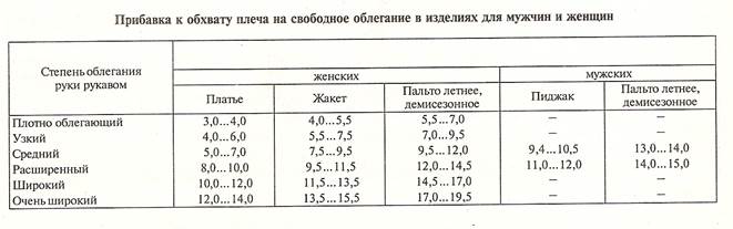 Расчет для построения чертежа женской плечевой одежды с втачным рукавом