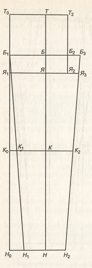 Рис. 2 – Построение базисной сетки чертежа конструкции брюк для мальчиков
