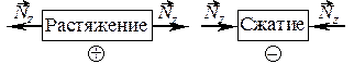 Если qz = ± q = сonst, то Nz = No ± qz, (1.4) т.е. продольная сила изменяется по линейному закону. Знак “плюс” соответствует погонной нагрузке, вызывающей растяжение стержня; при сжатии берется знак “минус”. При отсутствии погонной нагрузки (q = 0) продольная сила постоянна (Nz = No = const).