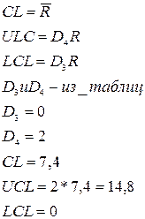 7. Вычисляют границы регулирования для R-карты.