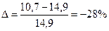 Следовательно, при снижении концентрации кислорода в четырехкомпонентной системе, состоящей из паров ацетона, двуокиси углерода, азота и кислорода, до 8,6% смесь становится взрывобезопасной. При содержании же кислорода, равном 10,7% эта смесь будет предельной по взрываемости. Согласно справочным данным (справочник "Пожарная опасность веществ и материалов, применяемых в химической промышленности". - М,, Химия, 1979), МВСК ацетоновоздушной смеси при разбавлении ее двуокисью углерода составляет 14,9%. Определим относительную ошибку расчета