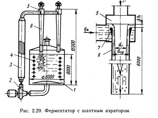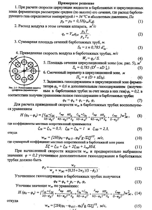 Если бы в аппарате циркулировала чистая жидкость, то при вводе газа в барботажную трубу в ней образовывалась бы газожидкостная смесь с газосодержанием г. Но поскольку в ферментаторе циркулирует смесь с газосодержанием ц, его величина в барботажной трубе б отличается от г и ц.