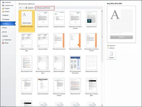 Рисунок 3. Последние шаблоны. Образцы шаблонов – набор шаблонов, часто используемых при работе с документами. Факс, отчет, стандартное письмо и шаблон документа образца Word 2003 – основные позиции по которым разработаны шаблоны.