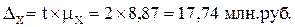 б) Средняя ошибка выборки: μх = где n - число единиц выборки (n = 30*0,2 = 6); N- число единиц генеральной совокупности, N = 30. Дисперсия: μх = Предельная ошибка выборки: при заданной вероятности р = 0,954 коэффициент доверия t = 2