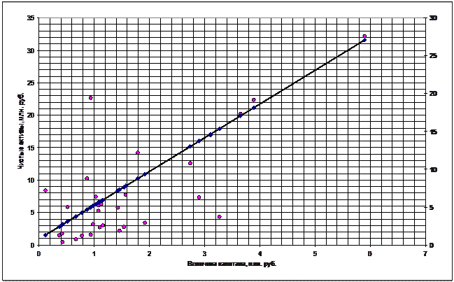 Рисунок 1. График зависимости между величиной капитала и чистыми активами