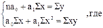 Система нормальных уравнений для нахождения параметров линейной регрессии методом наименьших квадратов имеет вид: