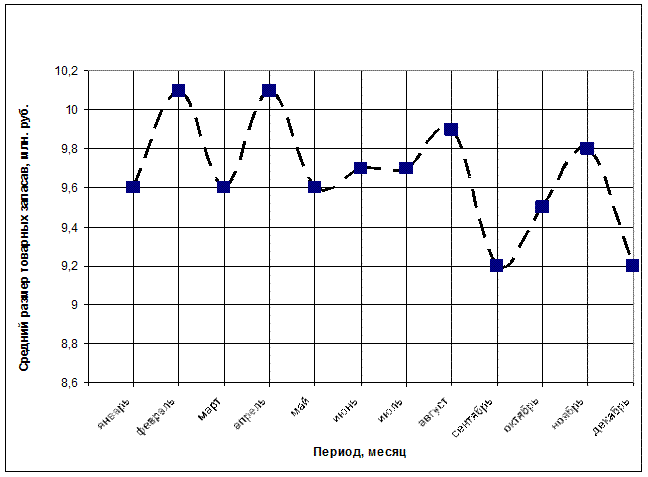 Рисунок 3. Средний размер товарных запасов в супермаркете Задача № 5