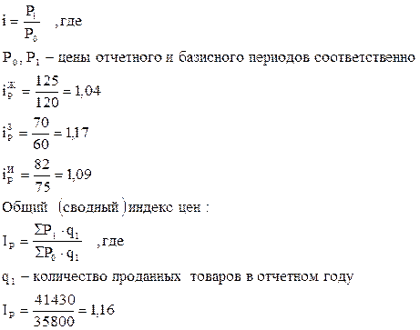 1. Индивидуальные и общие индексы цен