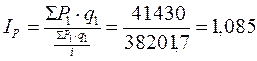Физический объём проданных товаров в отчетном периоде по сравнению с базисным уменьшился на 0,3%.