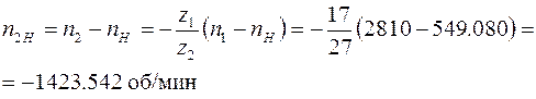 nA = n1 = 2810.000 OmA = Om1 = 294.263 n2H = -1423.542 Om2H = -149.073 n2 = -874.461 Om2 = -91.573 n3 = 0 Om3 = 0 nH = n4 = 549.080 OmH = Om4 = 57.500 n5 =-345.717 Om5 = -36.203 n6 = nB =-133.348 Om6 = OmB = -13.964 ================================================================ Значения вращающих моментов при TB = 58.333 Н·м и мощностей (без учета трения) при nA = 2810.000 об/мин