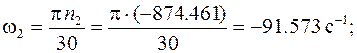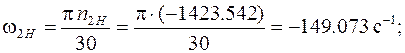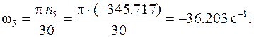 Угловые скорости звеньев, соответствующие найденным частотам вращения: