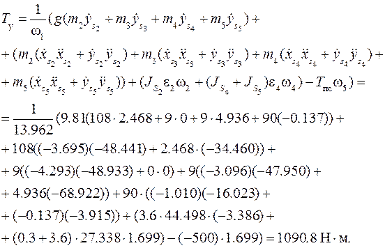 2.4.4. Определение уравновешивающего момента Определим уравновешивающий момент, используя результаты расчета по программе САМАС. Уравнение баланса мощностей: