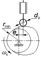 Требуется спроектировать кулачковый механизм наименьших размеров с поступательно движущимся роликовым толкателем (рис. 3.1); привести расчетные зависимости для построения кинематических диаграмм. Проиллюстрировать на примере одной из фаз движения кулачка вывод уравнения аналога скоростей и уравнения перемещений по известному уравнению аналога ускорений.
