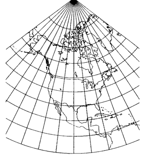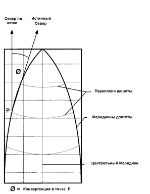 В большинстве проекций линии долготы и широты - кривые. Квадранты, образованные пересечением этих линий (обычно называемыми параллелями и меридианами) имеют различный размер и форму, что существенно усложняет определение расположения точек и измерение по направлениям. В системе UTM мир делится на 60 равных зон (каждая шириной в 60) между 840 северной и 800 южной широтами. Для полярных районов применяются другие, специальные, проекции. (см.рис.3-2). Каждая зона имеет свое начало при пересечении своего собственного центрального меридиана с экватором и отображает собой квадрат. Таким образом, на плоской карте, внешние границы зоны - кривые, т.к. они следуют линиям меридиан на круглом глобусе. Каждая такая зона пронумерована, начиная с зоны 1 на 180 меридиане. Площади к востоку и западу от Гринвичского меридиана занимают зоны 30 и 31. Любая точка на земле может быть идентифицирована номером своей зоны, расстоянием в метрах от экватора (“северное удаление”) и расстоянием от опорной линии Север-Юг (“восточное удаление”). Иногда зоны делятся на секторы, представляющие собой интервалы в 80 широты, начиная с зоны С при 800 С.Ш и кончая зоной Х при 720 Ю.Ш. Буквы I и О - пропускаются. Чтобы определить местонахождение точки на глобусе, нет необходимости пользоваться этим методом. Чтобы избежать употребления отрицательных величин при обозначении удаления к востоку, центральному меридиану каждой зоны, независимо от ее удаления к востоку, присваивается величина 500,000м. Ширина каждой зоны на экваторе приблизительно равна 600,000 м., сужаясь по мере приближения к полярным областям. В зависимости от этого, ширина зон меняется в пределах 200,000 - 800,000. Для точек, удаленных к северу от экватора, величина смещения на север измеряется на прямую в метрах, начиная от 0 на экваторе и возрастая по мере удаления на север. Во избежание отрицательных величин при обозначении удаления от экватора в южном полушарии, экваториальной линии присваивается величина 10,000,000м. и удаление на юг в южном полушарии измеряется уменьшающимися, но положительными величинами по мере их удаления. Фактор шкалы (= расстояние на сетке/истинное расстояние) на центральном меридиане равен по определению 0.9996 и слабо изменяется по мере удаления от центрального меридиана. Конвергенцией называется разница между направлением на Север по сетке и истинным Севером. Ясно, что на центральном меридиане направление по сетке на север совпадает с истинным направлением. Конвергенция будет слабо изменяться по мере удаления от центрального меридиана и от экватора. Конвергенция - отрицательна для востока и положительна для запада. Проектирование скважин обычно осуществляется по координатам сетки карты и, поэтому, направления будут ”привязаны” к ним. Однако, датчики системы телеметрии, работающие в скважине, ”привязаны ”на истинный или магнитный север. Пользователь обязан, поэтому, уметь преобразовывать эти системы координат из одной в другую.