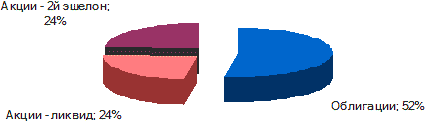 "Основной" портфель рассчитывается на основе нашей сбалансированной стратегии, в которой изменения в структуру вносятся еженедельно в рамках обновления целевой структуры портфелей ДУ. Периодичность публикуемых нами стратегических обзоров – ежеквартальная. Также ежеквартально в нашей стратегии на предстоящий квартал мы публикуем новую структуру модельных портфелей. Тем не менее, фактические модельные портфели пересматриваются еженедельно и динамика, которую мы приводим по портфелю "Основной", отражает инвестиционные результаты сегмента акций "Сбалансированного" модельного портфеля при еженедельном внесении изменений в структуру портфеля. Сбалансированная стратегия подразумевает включение в портфель большой доли рискованных долевых инструментов (до 50% портфеля) – причем не только акций голубых фишек, но также акций компаний второго эшелона, потенциал роста по которым зачастую высок, но высокий потенциал роста сопровождается более высокими рисками портфеля. Доходность сбалансированного портфеля ожидается на уровне 23% годовых. Возможное снижение стоимости портфеля – 15%.