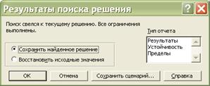 Рис. 2. 42. Диалоговое окно Результаты поиска решений процедуры Поиск решения