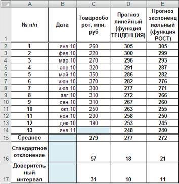 Вид окна функции СТАНДОТКЛОН для ячейки С16 приведен на рис. 3.12, а полученный результат – на рис. 3.14