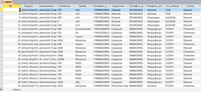 Рис.24. Содержимое базы данных Drivers1.accdb