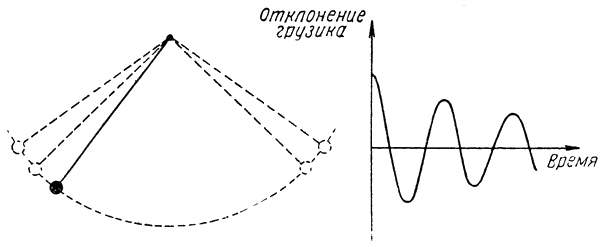 Изучая свойства электромагнитных волн, мы часто обращались к помощи простых и наглядных примеров из самых различных областей физики. Волны на поверхности воды, звуковые и световые, «рассказывали» об интересующих нас свойствах. Сейчас, прежде чем перейти к электрическим колебаниям, надо вспомнить основные законы колеблющегося маятника. На длинном свободно качающемся стержне укреплен небольшой грузик. Достаточно однажды качнуть его, и начнутся свободные, постепенно затухающие колебания маятника. Поднимаясь в любое крайнее положение, грузик на мгновение замирает, а затем под действием собственной тяжести начинает движение в обратном направлении. Его скорость постепенно возрастает, достигая наибольшего значения в крайнем нижнем положении. Инерция не позволяет грузику остановиться. Преодолевая силу тяжести, он поднимается до другого крайнего положения. Далее все повторяется сначала. При этом с каждым колебанием маятника уменьшается высота, на которую «взбирается» грузик,— колебания затухают. Рассмотрим это явление с энергетической точки зрения. В любом крайнем положении грузик обладает запасом так называемой потенциальной энергии. Затем, вместе с увеличением скорости начинает увеличиваться его кинетическая энергия. Откуда она берется? Разумеется, она появляется за счет запаса потенциальной энергии. Кинетическая энергия грузика увеличивается за счет уменьшения его потенциальной энергии. В крайнем нижнем положении скорость движения грузика наибольшая. Следовательно, в этот момент и его кинетическая энергия достигает наибольшей величины. В нее перешел весь запас потенциальной энергии, накопленный подъемом в крайнее положение. При дальнейшем движении грузика обмен энергией происходит в обратном направлении. Скорость уменьшается, вместе с ней уменьшается и кинетическая энергия. Но грузик «взбирается» все выше и выше, увеличивается его потенциальная энергия. Происходит как бы перекачивание энергии из одного «сосуда» в другой и обратно. Естественно возникает вопрос: существуют ли потери энергии при такого рода «перекачке»? {59} Теперь надо вспомнить о затухании. С каждым колебанием грузик «взбирается» на все меньшую высоту, все меньшей потенциальной энергией обладает он в крайних положениях. Значит где-то на «пути» качаний маятника гнездится «канал», в который «уходит» энергия. Таким «каналом» является трение. Встречая на пути быстро двигающийся грузик, оно последовательно в каждый период качания, порцию за порцией отнимает весь запас энергии — колебания затухают, маятник останавливается. Для того чтобы этого не случилось, необходимо все время добавлять колеблющейся системе потраченную на трение энергию. В обыкновенных стенных часах маятник колеблется без затухания