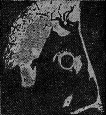 Группа самолетов-бомбардировщиков летит выполнять важное боевое задание. За бортом воздушного корабля глубокая облачность, непроглядная ночь. Где-то далеко внизу, завернувшись в мрачное покрывало спасительницы-непогоды, расположен небольшой, но важный объект бомбардировки. Как отыскать его? Как отличить его на фоне огромной и единой общей «цели» — поверхности земли? Для этой цели были использованы так называемые панорамные индикаторы. Основание гигантского конуса, в вершине которого находится самолет, сделалось зоной одновременного наблюдения. Летчики получили в свое распоряжение контурную карту, нарисованную электронным лучом на экране радиолокатора. Под фюзеляжем самолета располагается антенна радиолокатора. Ее диаграмма направленности, как лезвие острого ножа, опускается на поверхность земли, вытягиваясь далеко вперед по направлению полета. Только непосредственно под самолетом радиоволны падают на землю вертикально, впереди же волна приходит к земле наклонно. Отражение очень сильно зависит не только от качества поверхности, но и от ее формы. Если поверхность гладкая, то она отражает, как зеркало, если неровная,— то волны рассеиваются во всех направлениях, и наблюдение с помощью радиоволн становится возможным. В тот момент, когда радиолокатор посылает зондирующий импульс, в центре экрана появляется светящееся пятно. Одновременно с импульсом оно начинает двигаться по радиусу, рисует {94} линию. Такая развертка может быть осуществлена, например, с помощью магнитного поля отклоняющей катушки. Поступающие эхо-сигналы попадают на управляющий электрод трубки и изменяют яркость пятна. Чем сильнее отраженный сигнал, тем ярче пятно. Чем дальше находится цель, тем дальше от центра экрана появится «изображение» этой цели. Так как каждое тело на поверхности земли, «освещенное» радиолокатором, в той или иной степени отражает радиоволны, то электронный луч прочертит линию
