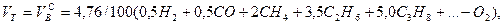 Пример. Имеется газ состава СН4 – 95%, С3Н8 – 5%. Определить объем воздуха действительного для сжигания данного газа при α = 1,1 и Производим расчеты: