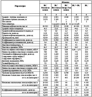 Таблица 6. Исходные параметры для расчётов основной залежи пласта Ю1/1